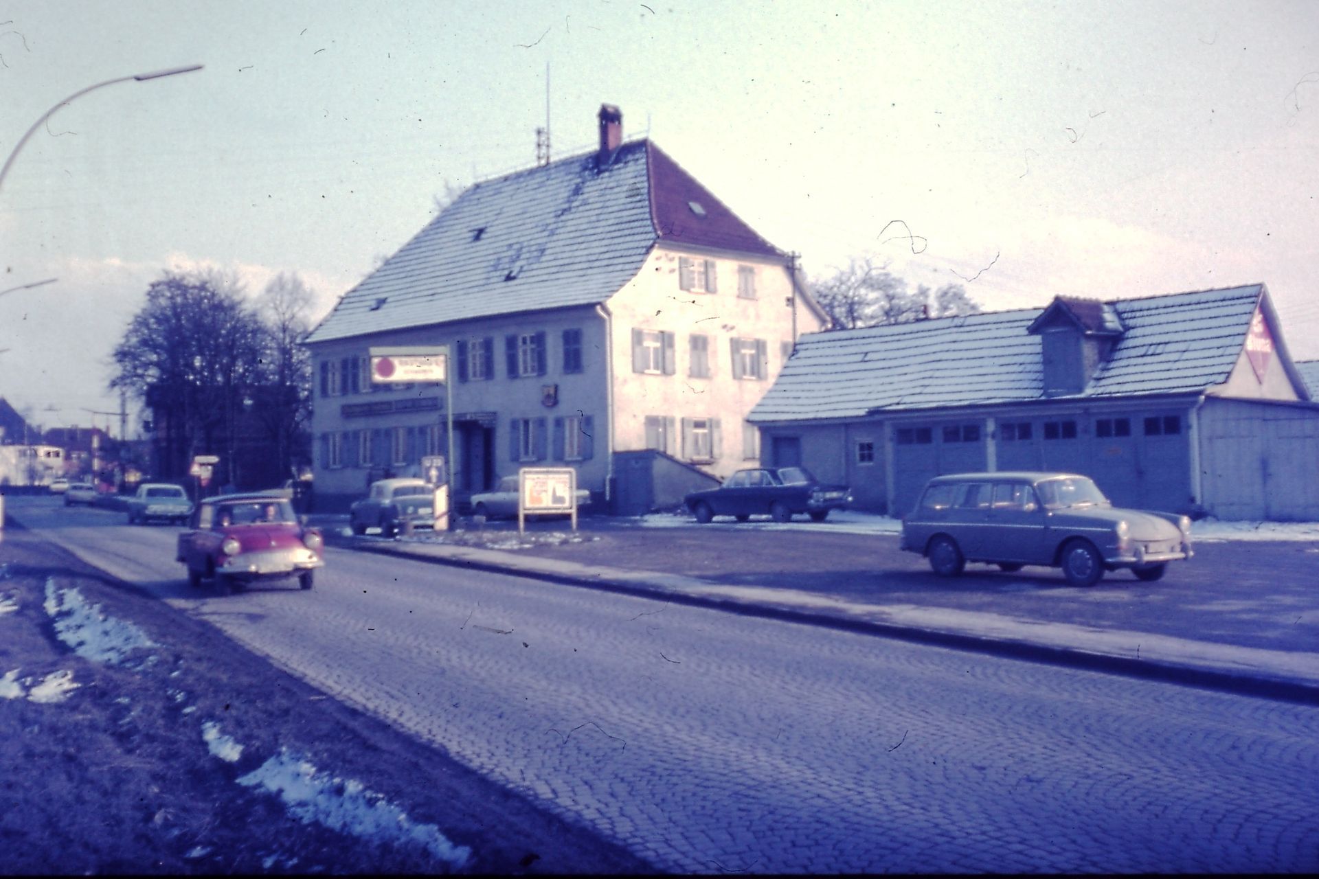 Abb. 10 & 11: Der Schwanen an der Stuttgarter Straße, ca. 1970. Im Hintergrund der ehemalige Bahnübergang.