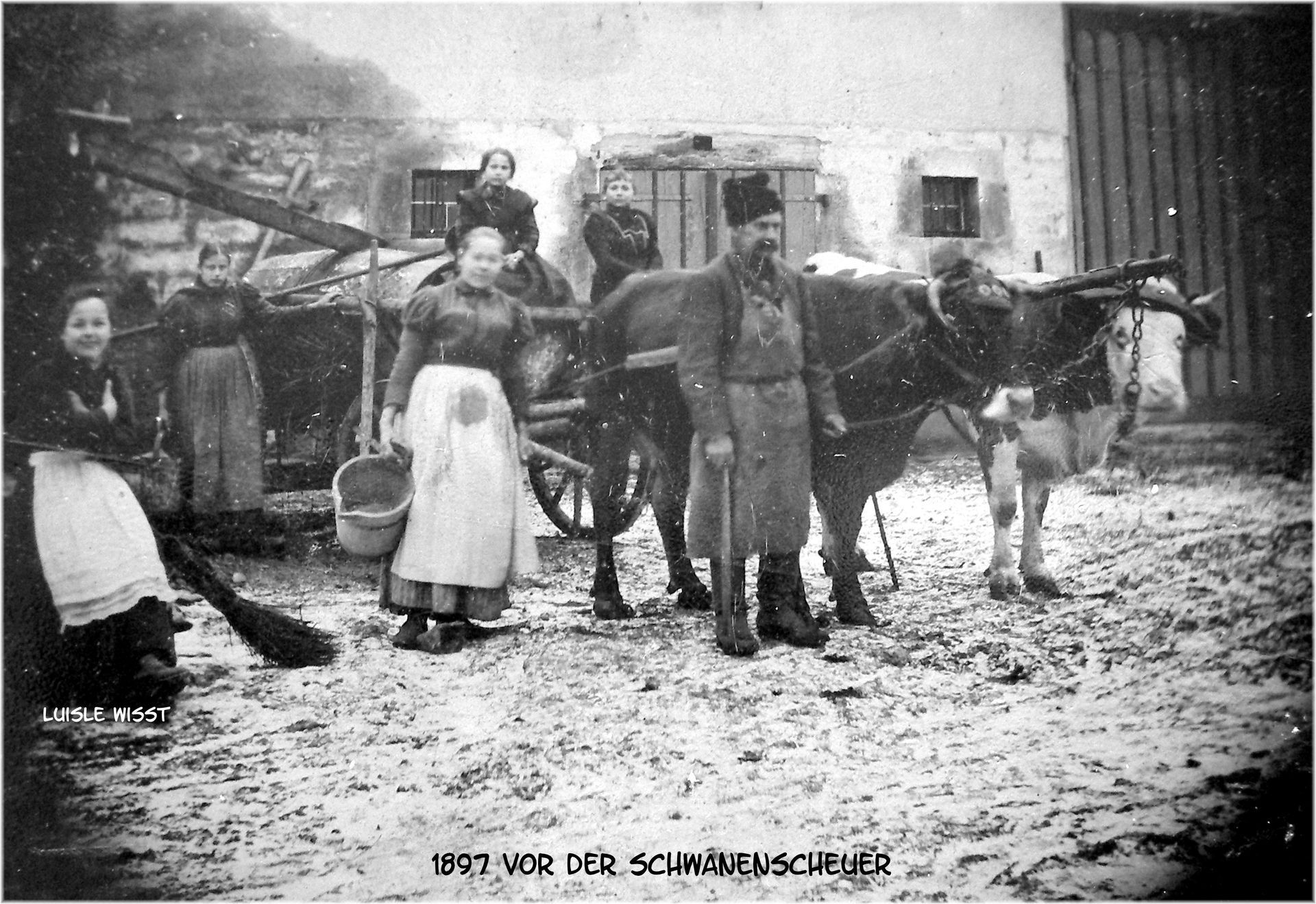 Abb. 7: Ochsengespann vor der Schwanenscheuer, 1897.