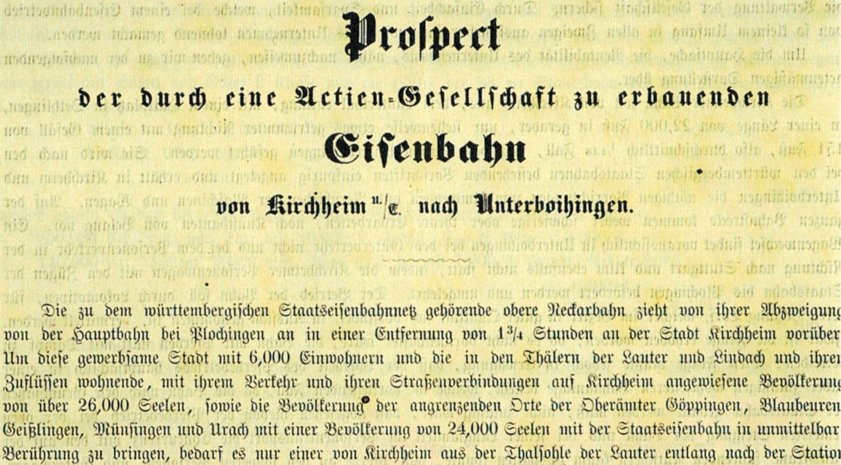 Abb. 2: Aufruf zum Aktienkauf für den Bau der Bahnstrecke Unterboihingen-Kirchheim u.T. Aus HERGENRÖDER, 1992.
