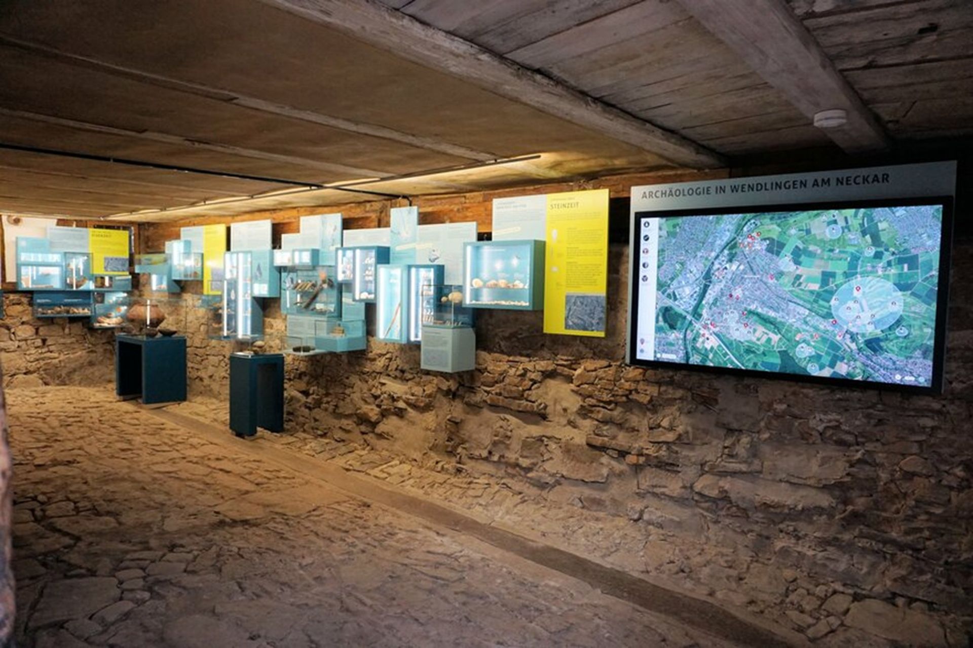 Abb. 3: Blick in die neu konzipierte vorgeschichtliche Ausstellung im Viehstall. Foto Stadtarchiv Wendlingen am Neckar.